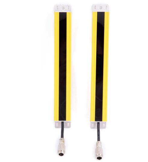 光電保護(hù)裝置通過(guò)相對(duì)紅外光束形成保護(hù)光幕。當(dāng)保護(hù)區(qū)的光束被阻擋時(shí),光幕可以通過(guò)信號(hào)傳輸安全地停止機(jī)器的操作或報(bào)警,從而有效地避免安全事故的發(fā)生。它是工業(yè)上一種先進(jìn)而高效的安全保護(hù)裝置技術(shù)。